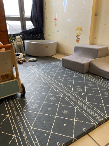 Tapis très confortable avec une grande surface qui permet à tout le monde de s’y installer pour partager des beaux moments de jeu !