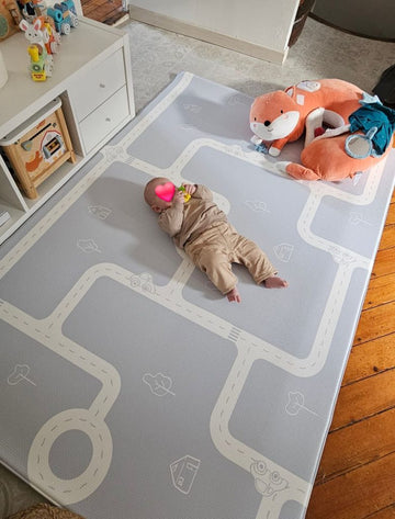 Un tapis, deux designs. Utilisable dès la naissance comme tapis d'éveil, ensuite comme un tapis de jeu pour les plus grands. Les tapis sont anti-dérapantes grâce à ses surfaces en relief.