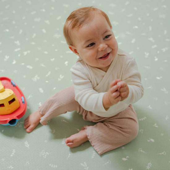 Grâce à ses motifs doux, pas de sur-stimulation visuelle pour bébé qui peut ainsi se concentrer sur ses jouets et sa motricité.