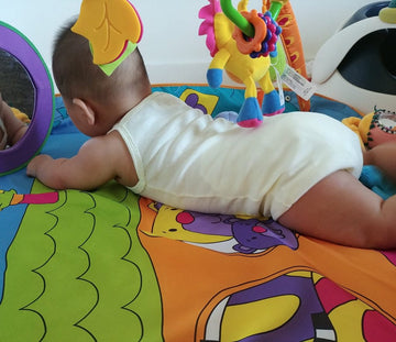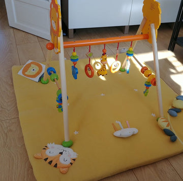 Le but était d'avoir un tapis d'éveil /tapis de jeu idéal pour les enfants ET les parents. Parce que nous nous sommes rendus compte que nous passions beaucoup de temps au sol avec le bébé afin de profiter de chaque instant : le tummy time, le massage, les retournements, les quatre-pattes et les premiers pas, etc…